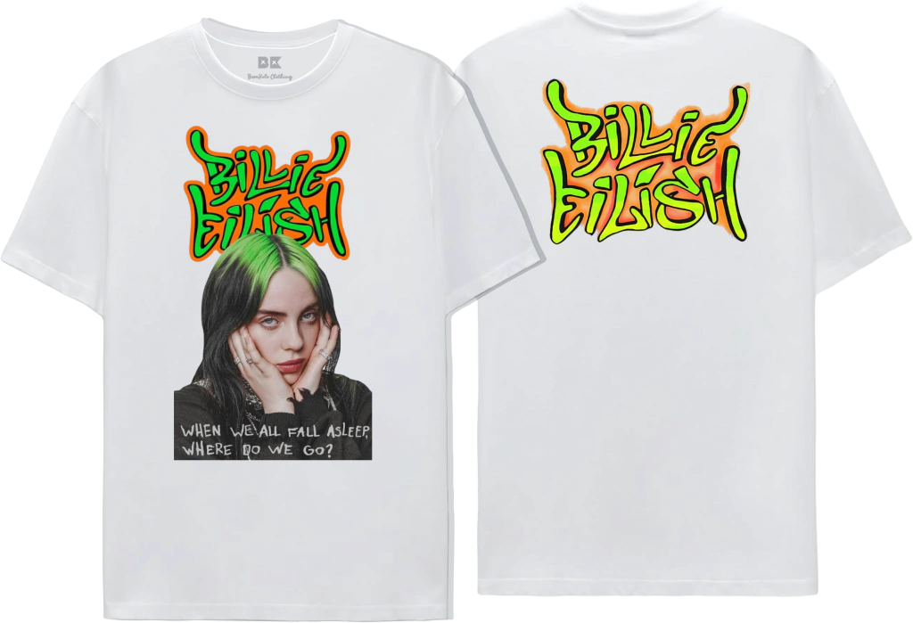 Estampa: Utilizamos a tecnologia DTF (Direct to Film) para uma estampa vibrante e duradoura, que destaca a essência única da Billie Eilish.