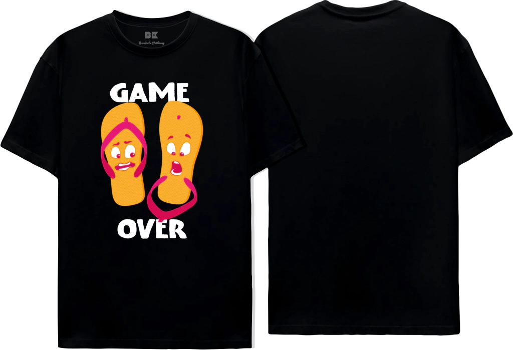 Camiseta Game Over "Chinelo Quebrado" Prepare-se para dar boas risadas e conquistar corações com a nossa divertida camiseta Game Over ! Essa peça é perfeita para quem não tem medo de mostrar seu lado engraçado e autêntico. Afinal, quem nunca teve um chinelo com a correia quebrada, não é mesmo?