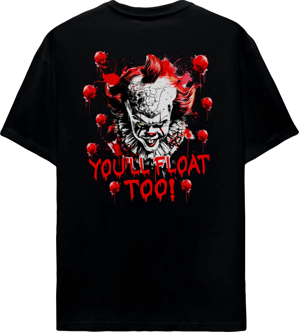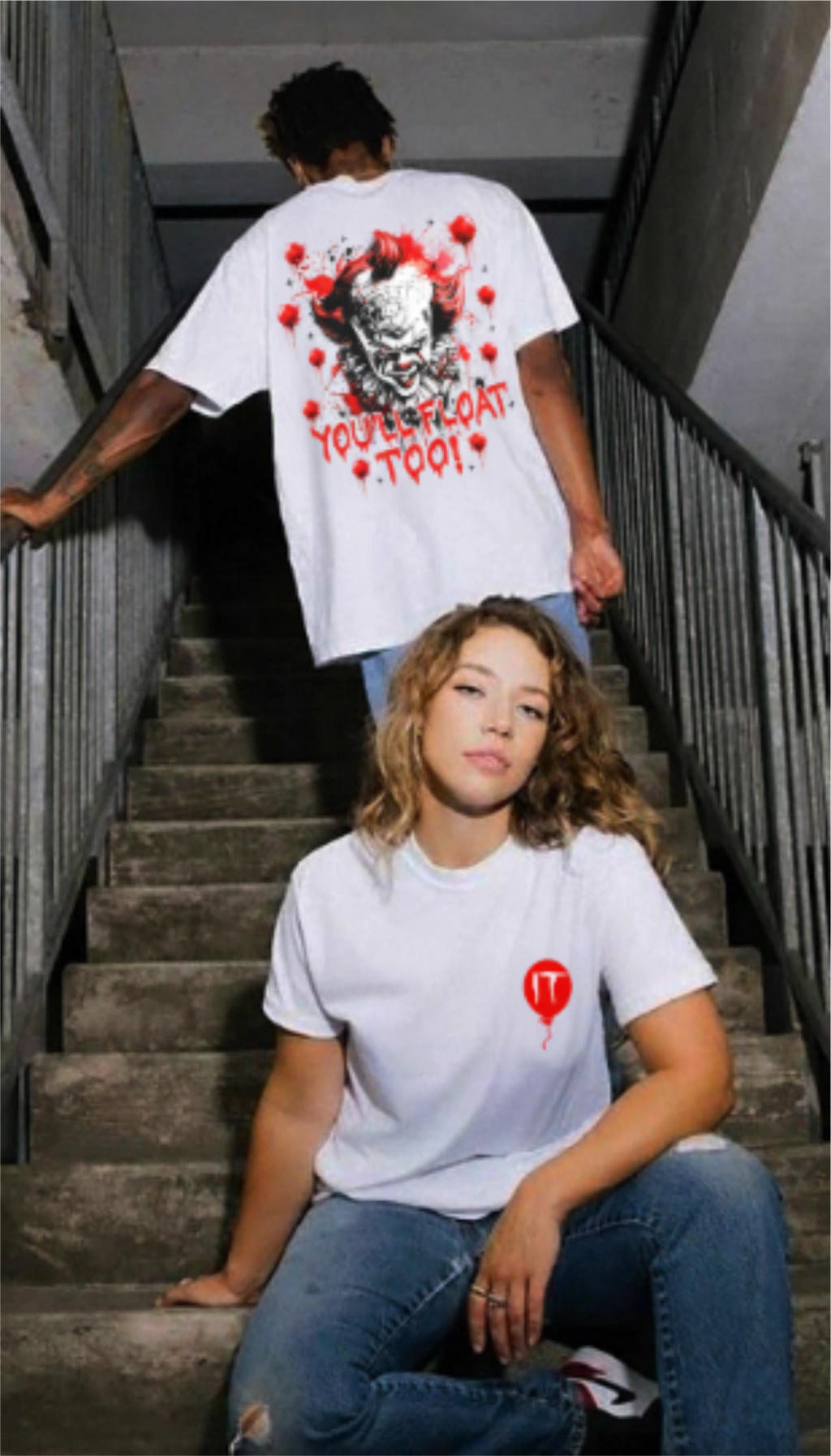 Na parte frontal, o icônico logo do filme e da série IT aparece em destaque no peito, transmitindo um visual sombrio e elegante. Já nas costas, uma impressão em alta definição de Pennywise com olhar penetrante e expressão assustadora transforma a peça em uma verdadeira obra de arte do terror — perfeita para quem gosta de chamar atenção com estilo e atitude.