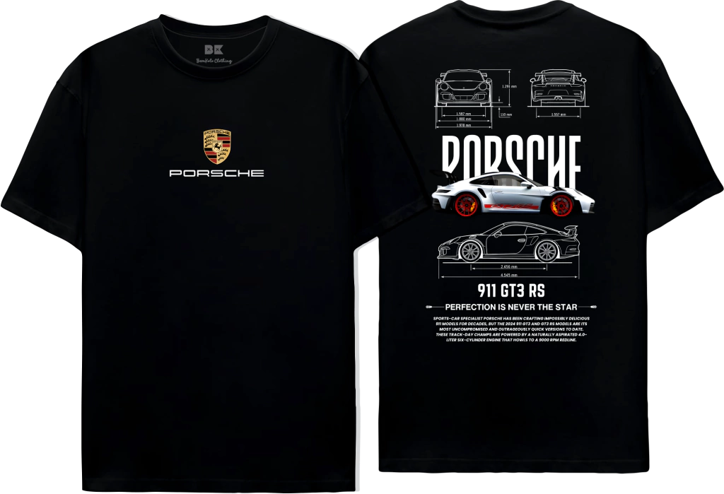 Estampa de Alta Qualidade: A estampa é feita com tecnologia DTF (Direct to Film), que garante cores vibrantes e uma durabilidade impressionante. Cada detalhe da estampa é uma homenagem ao icônico modelo 911 GT3 RS, trazendo a emoção das pistas para o seu guarda-roupa.